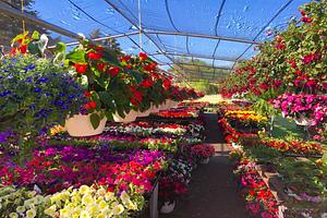 A small nursery had so many colors and different flowers. A very vibrant shot